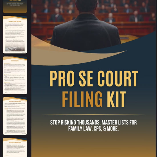 The PRO SE COURT FILING KIT is your complete legal operations center, purpose-built for civil cases, to end the confusing internet searches and give you total command over your lawsuit. This system is the strategic alternative to expensive lawyer fees and the anxiety of managing your case alone.